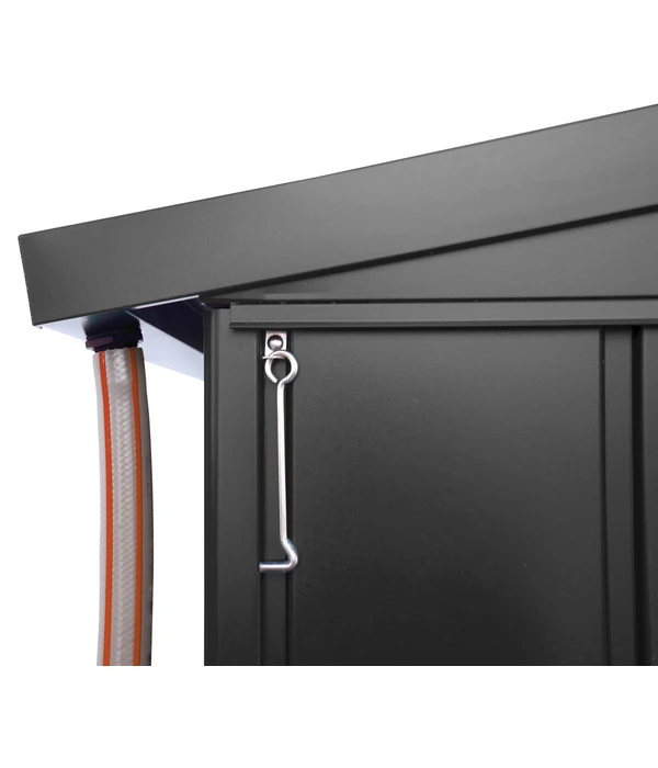 Werkzeuge, Gartengeräte, & Co. finden im Gerätehaus Europa 5 von Biohort garantiert ihren Platz. Feuerverzinkte, polyamid-einbrennlackierte Stahlblech-Elemente und eine umfangreiche Grundausstattung zeichnen das Europa 5 aus. Mitgeliefert werden vier Halter für Gartengeräte, zwei Regale sowie ein Ordnungssystem, in dem Sie viele Utensilien für den Garten unterbringen können. Ein Regenrinnen-Set und eine Flügeltür mit Drehgriff-Zylinderschloss sind ebenfalls inklusive. Das Gerätehaus Europa 5 besitzt eine geräumige Doppeltür mit Drehzylinderschloss inklusive Reserveschlüssel und lässt sich einfach zusammenbauen anhand Foto-Aufbauanleitung, Schraubverbindungen, Scharniere etc. Es besteht aus rostfreiem Edelstahl. Umfangreiches Zubehör ist zusätzlich erhältlich. Die Außenmaße inklusive Dachvorsprung betragen: 209 x 316 x 228 cm.