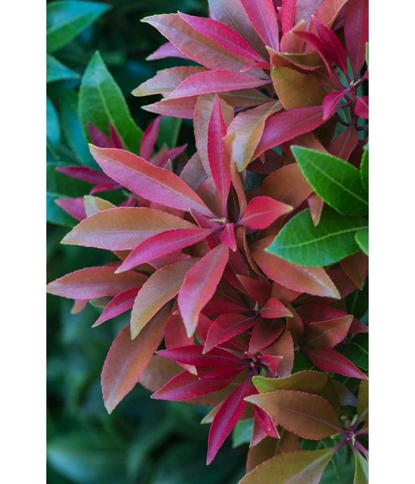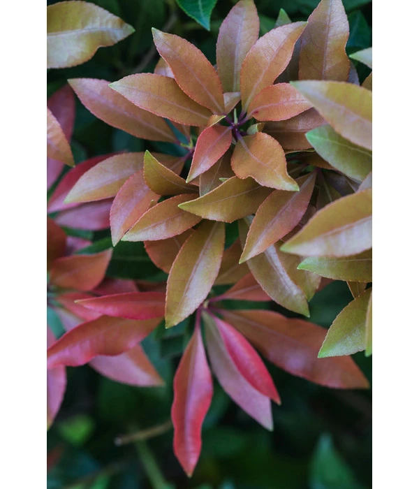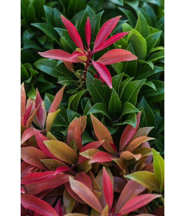 Wenn immergrüne Pflanzen im Frühjahr zu wachsen beginnen, geschieht dies oft eher unspektakulär. Sie bilden still und leise neue Triebe bzw. neue Blätter und nach einiger Zeit stellt der Gärtner fest, dass die Pflanze deutlich an Größe zugenommen hat. Ganz anders verhält sich das Schattenglöckchen. Jedes frische Blatt zeigt keine grüne, sondern eine leuchtend rote Farbe, so dass bei einem kräftigen Wachstumsschub die rote Farbe des Neuaustriebs der Pflanze die volle Aufmerksamkeit des Betrachters sichert. Und das für eine längere Zeit, denn die spektakuläre Blattfarbe vergrünt nur sehr langsam. Außerdem entwickelt das Schattenglöckchen in den Monaten April und Mai weiße, glockenartige Blüten, die in überhängenden Rispen den Zwergstrauch schmücken. Die Japanische Lavendelheide ‚Mountain Fire‘, wie das Schattenglöckchen auch genannt wird, hat seine Heimat in Japan und es ist kein Allerweltsstrauch, der in fast jeden Garten zu finden ist, sondern bereichert mit seinem fernöstlichen Flair bisher nur wenige Privatgärten. Der langsam wachsende Zierstrauch kann im Alter eine Höhe von 200 cm und eine Durchmesser von 150 cm erreichen.