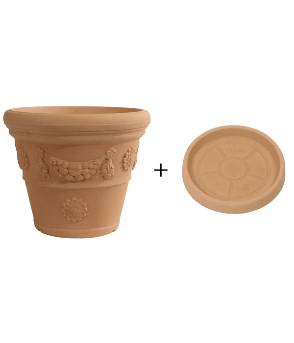 Ein elegantes und hübsch verziert: Farmet New Kunststoff-Topf Festonato inkl. Untersetzer