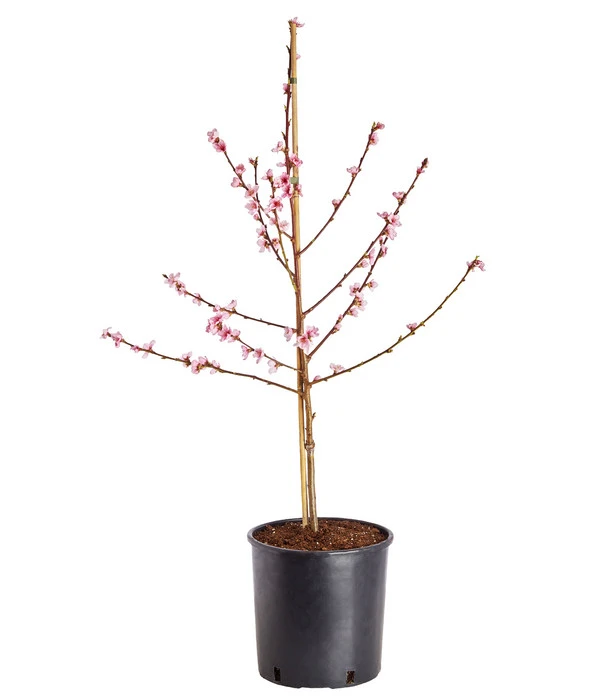 Setzen Sie deshalb dieses Pfirsichbäumchen an einen warmen, vollsonnigen Standort, der idealerweise vor kalten Ostwinden geschützt ist. Am wohlsten fühlt sich ein Gelbfleischiger Pfirsich zum Beispiel an einer warmen Südwand. Der Boden sollte nährstoffreich, lehmig und humos sein. Versorgen Sie den Pfirsichbaum mit ausreichend Wasser, vermeiden Sie aber Staunässe. Wichtig für einen kräftigen Wuchs und guten Ertrag ist der regelmäßige Schnitt. Da Pfirsiche am einjährigen Holz fruchten, sollten Sie die abgeernteten Triebe gleich nach der Ernte kräftig zurückschneiden. Das regt die Bildung neuer Triebe an. Darüber hinaus empfehlen wir Ihnen, direkt vor oder nach der Blüte einen sogenannten Fruchtholzschnitt durchzuführen.