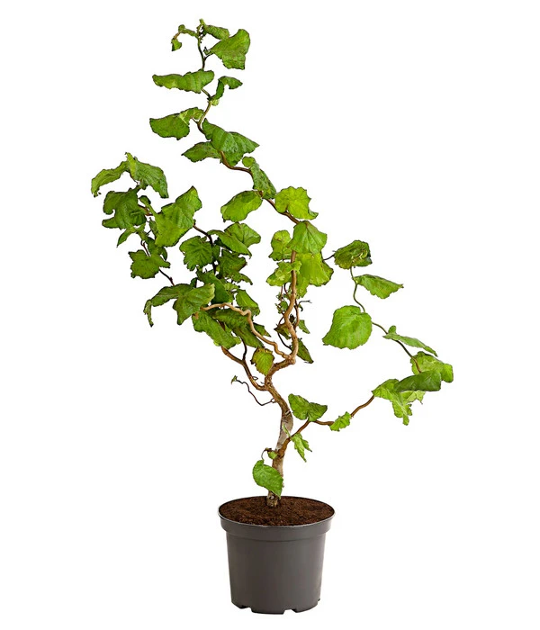 Mit ihrer bizarren Form ist die schwachwüchsige Korkenzieher-Hasel ‚Contorta‘ ein echter Hingucker in jedem Garten. Anders als normale Haselnusssträucher wächst die Korkenzieherhasel vor allem am Anfang sehr langsam. Die wellig geformten Blätter erscheinen in einem dunklen Grün und verfärben sich im Herbst gelb. Im Winter ist der Zierwert der Korkenzieherhaselnuss besonders groß, da die Wirkung der korkenzieherförmig gedrehten Zweige dann voll zur Geltung kommt.