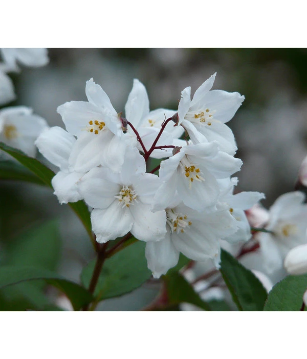 Großartig, prächtig – hätte das Ziergehölz diese schmückenden Adjektive nicht bereits im Namen, müsste man sie umgehend vergeben. Denn wenn sich die Großartige Deutzie im Juni mit den reinweißen, sehr großen Einzelblüten schmückt, die in so dichten Doldenrispen an den Trieben hängen, dass diese sich unter der Blütenlast sanft neigen, ist das ein wahrhaft spektakulärer Anblick, mit dem sich dieses Ziergehölz für die Oberliga der Blühsträucher qualifiziert. Zumal die Großartige Deutzie den Garten nicht nur mit ihrem Blütenzauber schmückt, sondern auch mit lieblichem Duft erfüllt. schmal aufrecht und sehr stark wachsend wird die Großartige Deutzie zu einem bis 4 m hohen Strauch, der die Gartenanlage prägt.