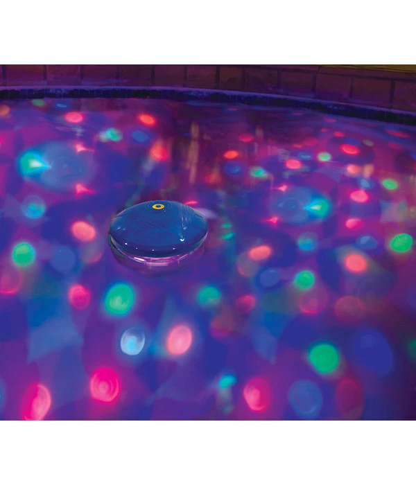 Wenn Sie einen Pool besitzen und Ihre Gäste bei der nächsten Gartenparty am Abend mit einem ganz besonderen Highlight überraschen wollen, dann ist das LED Unterwasserlicht von Summer Fun genau das richtige Produkt für Sie. Es bietet Ihnen eine schwimmende LED-Lichtershow, die Ihren Pool mit einem Lichtspektakel verzaubert. Gleich vier fröhliche Farben tanzen im Wasser und machen jeden abendlichen Aufenthalt im Freien zu einem spannenden Ereignis. Die Vorrichtung beleuchtet Pools mit einem Durchmesser von bis zu 3 m und ist beliebig erweiterbar. Planen Sie Ihre beeindruckende Lichtershow mit sieben Beleuchtungsvarianten, die für eine romantische bis schnell blinkende LED-Abfolge sorgen.