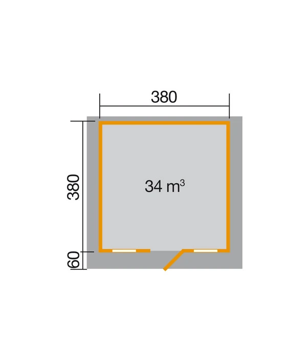 Bemaßung: Firsthöhe 262 cm, Seitenwand 210 cm (ab Oberkante Fundament)