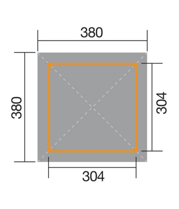 Dachüberstände: Seiten je ca. 38 cm, vorne und hinten 38 cm
