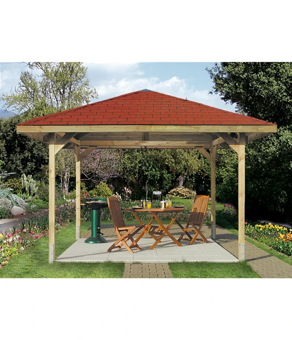 4-Eck Gartenoase 651 mit naturbelassenem 19 mm Massivholzdach, ohne Boden, Konstruktionshölzer kesseldruckimprägniert