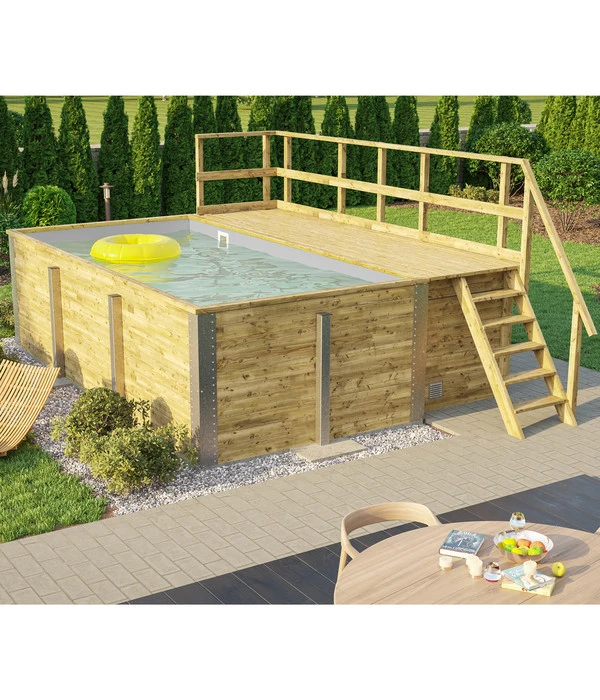 Stellen Sie sich vor, Ihr lang gehegter Traum vom eigenen Swimmingpool ginge in Erfüllung. Sehr bald schon kann er mit dem Weka Massivholzpool 595 wahr werden. Dieses fantastische Kleinod präsentiert sich im attraktiven Kompaktformat und bieten Ihnen alles, was echtes Urlaubsfeeling im eigenen Garten ausmacht. Relaxen Sie bei einem kühlen Bier oder einem spritzig-fruchtigen Cocktail auf dem Sonnendeck, lassen Sie sich auf Ihrer Luftmatratze treiben, während Sie in den blauen Himmel schauen oder planschen Sie nach Herzenslust mit Ihren Kindern oder Enkeln.