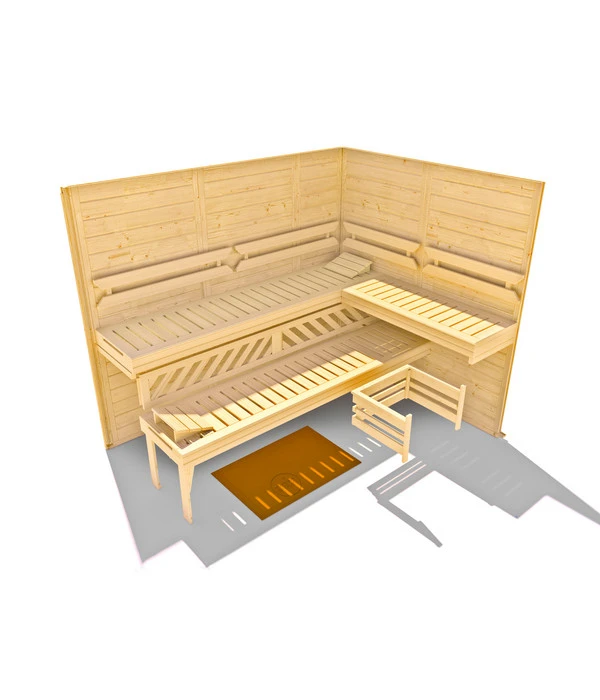 Ebenfalls dabei: der Saunaofen und die Inneneinrichtung