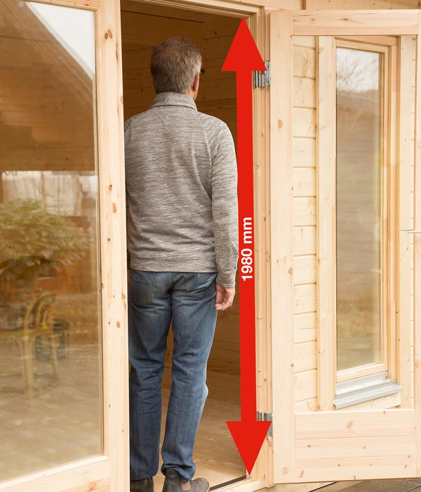 70 mm Wandbohlen, extra hohe Schiebetür, Isolierverglasung