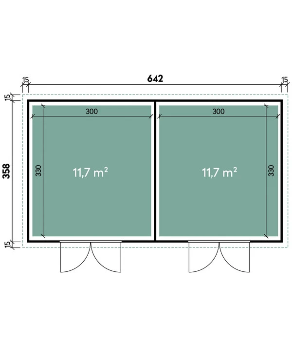 Das Gerätehaus Eleganto Twin plus 6436 von Wolff Finnhaus beinhaltet, dank der integrierten Trennwand, gleich zwei Innenräume. So können Sie Ihre Utensilien, egal, ob Fahrräder oder Rasenmäher, nach Bedarf sortieren und individuell verstauen. Dank der extragroßen Doppeltüren, lassen sich auch größere Gegenstände unkompliziert einstellen, während die Verglasungen ausreichend Tageslicht ins Innere lassen. Aufgrund der soliden Konstruktion aus hochwertigem Stahl ist das Gerätehaus äußerst wetterfest, pflegeleicht und UV-beständig. Zudem begeistert es durch seine Modulbauweise mit einem einfachen Aufbau.
