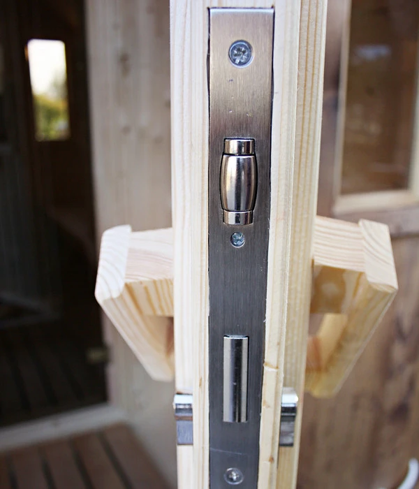 Alle Wandelemente bestehen aus 42 mm starken Bohlen, von oben schützen hochwertige, 6-eckige Dachschindeln das Fass gegen Witterung. Die Tür, durch die Sie die Saunakabine betreten, besteht aus hochwertigem Leimholz, das beste Funktionalität für viele Jahre garantiert. Die Form der relativ kleinen Tür ist für finnische Saunafässer typisch und sorgt für ein ganz eigenes Flair im Wolff Finnhaus Saunafass Basic 250 montiert. Durch das Glaselement in der Tür und die beiden Fenster kann Tageslicht ins Innere fallen, was die Wohlfühl-Atmosphäre perfekt macht.