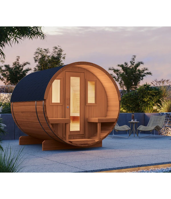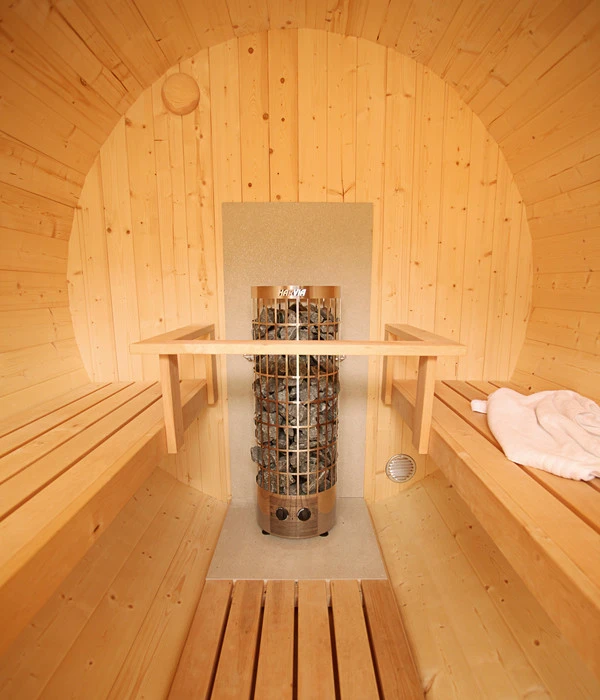 Sie haben sich auf den ersten Blick in das urige Fass-Design dieser Outdoor-Sauna verliebt? Dann werden Sie begeistert sein, wie schön sich das Fass mit dem vielen Holz in Ihren Garten einfügt. Ebenso begeistert aber werden Sie von dem optimalen Wärmeaustausch in dem runden Raum sein. Denn in dem Wolff Finnhaus Saunafass Basic 250 montiert sind keine Winkel und Ecken, die die Luftströme ablenken und unterbrechen – für perfektes Schwitzen!