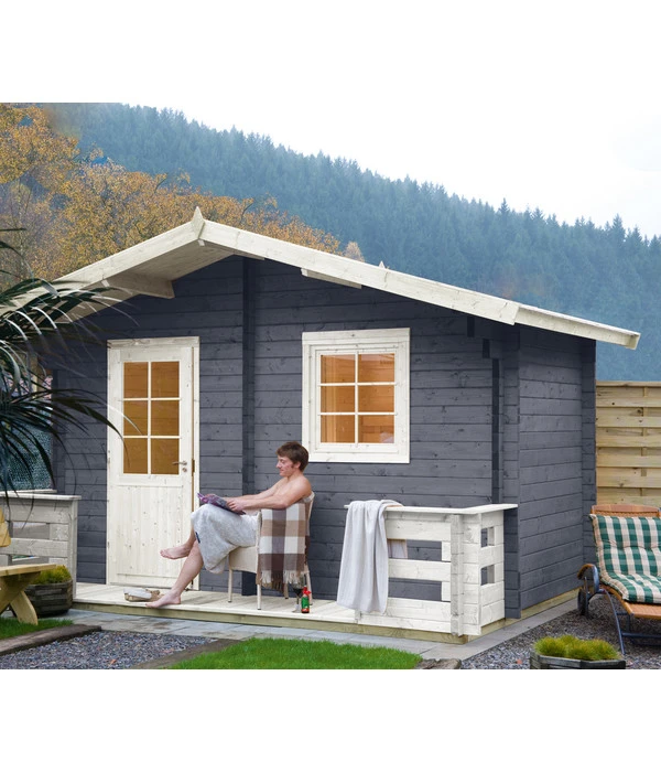 Um demnächst in Ihr neues „Ferienhausˮ zu gelangen, brauchen Sie weder Flugzeug noch Zug oder Auto. Genau genommen reichen Ihnen ein paar Schritte, um dahin zu gelangen. Denn das Finnhaus Saunahaus de luxe Sanna 70 kann schon bald direkt in Ihrem Garten stehen. Zugegeben, es ist kein Ferienhaus, sondern eine Sauna im Ferienhaus-Design, das Ihnen einige Extras zu bieten hat. Das beginnt mit der kleinen Veranda, die von urigen Geländern eingerahmt wird und setzt sich innen mit einem großzügigen Vorraum fort, in dem Sie Bademantel und Co ablegen können, wo Sie es sich aber auch zwischen den Saunagängen gemütlich machen können. Von dort geht es in die Sauna, die 3 einladende Ruhebänke auf zwei Ebenen für Sie bereithält. Durch die Fenster gelangt sanftes Tageslicht herein, um Ihnen das perfekte Saunaerlebnis zu bescheren. Sie finden, dieses Paket passt perfekt zu Ihnen? Dann holen Sie sich den hochwertigen Bausatz und lassen Ihr Finnhaus Saunahaus de luxe Sanna 70 in Ihrem Garten entstehen!
